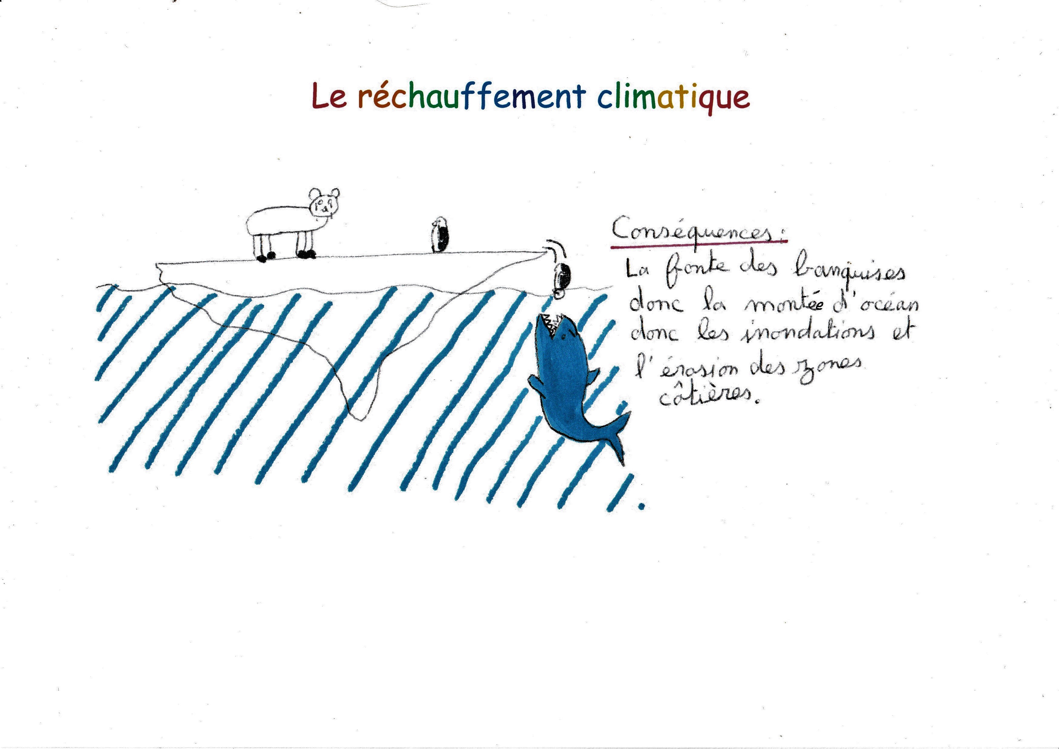 Voici quelques travaux d'élèves de 5ème en lien avec le réchauffement climatique :