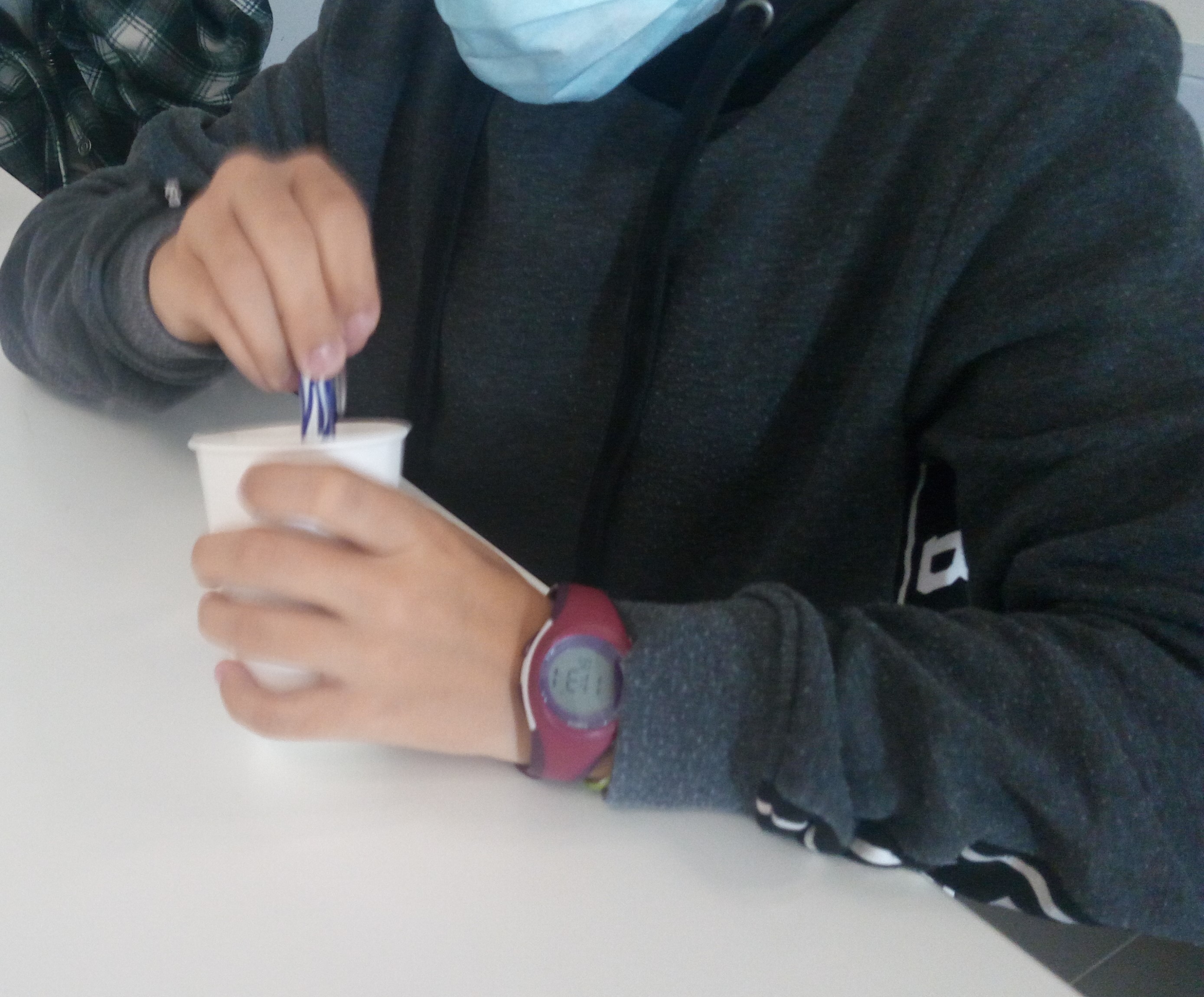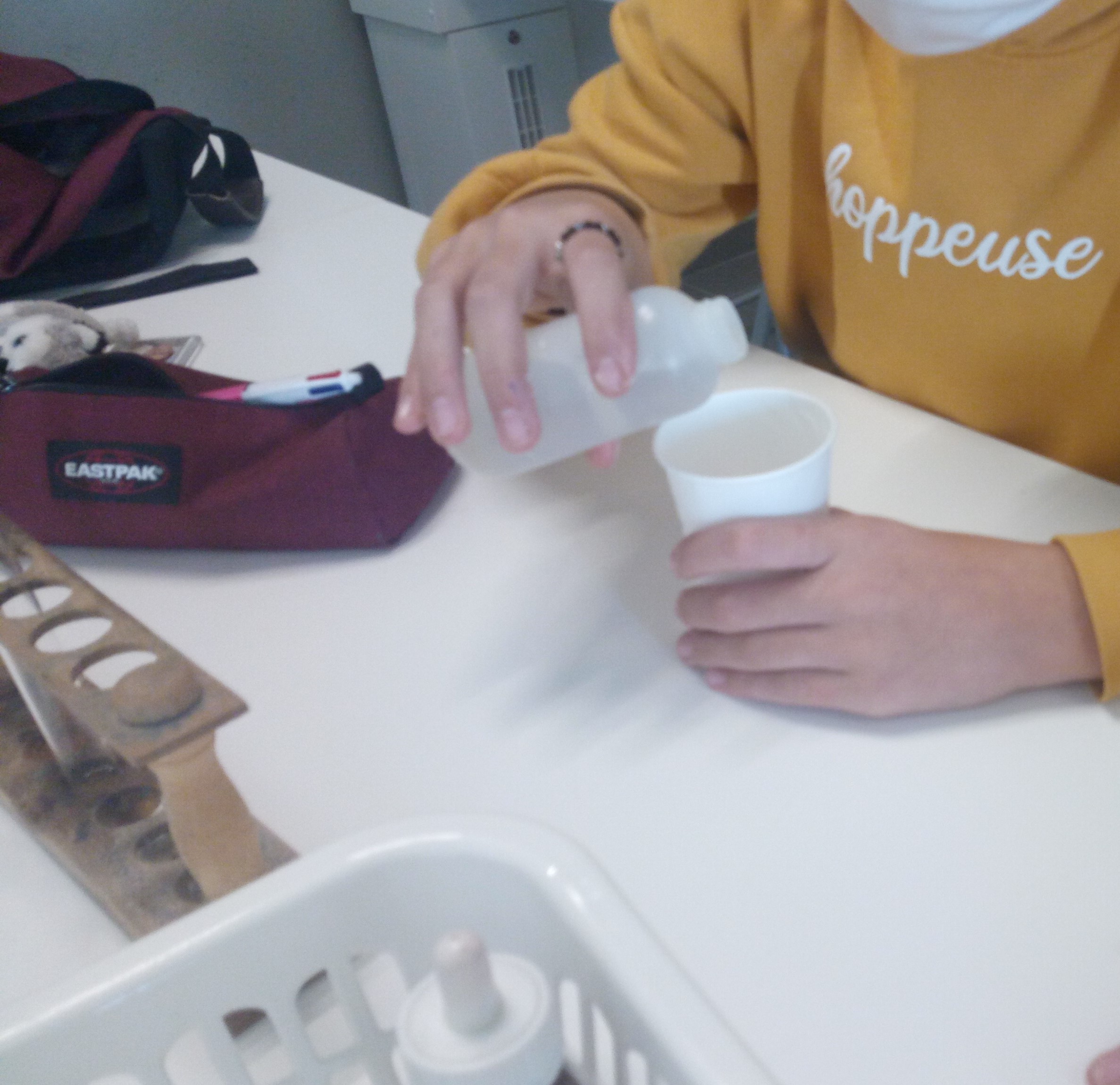 1. Mettre du coton dans un petit récipient (ici un verre). Eventuellement tasser.