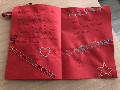 Les élèves se sont présentés brièvement (on révise en même temps ? ), ont souhaité de bonnes fêtes et apporté leurs encouragements à des enfants malades qui en ont bien besoin.