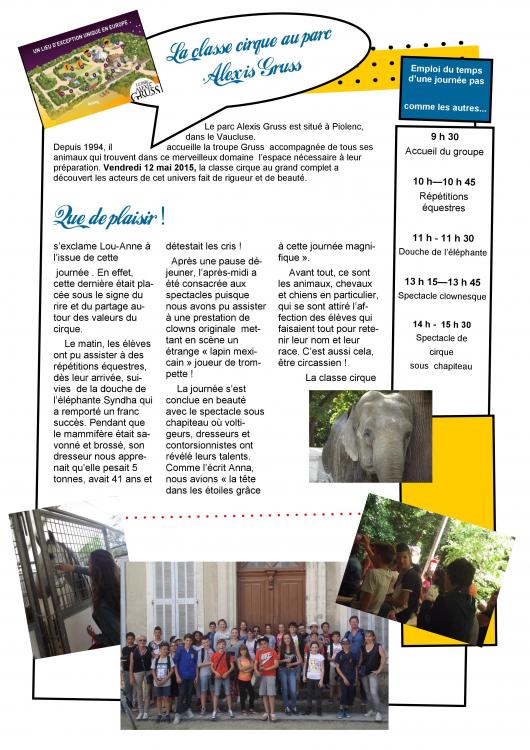 Vous êtes ici : Accueil » » Classe Cirque » Sortie au Parc Alexis Gruss à Piolenc 2015